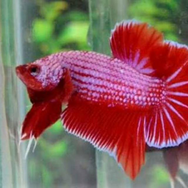 Cupang red hellboy memiliki ciri warna tubuh merah pekat dengan 1 warna iridescent color atau sisik iridencent / mengkilap.